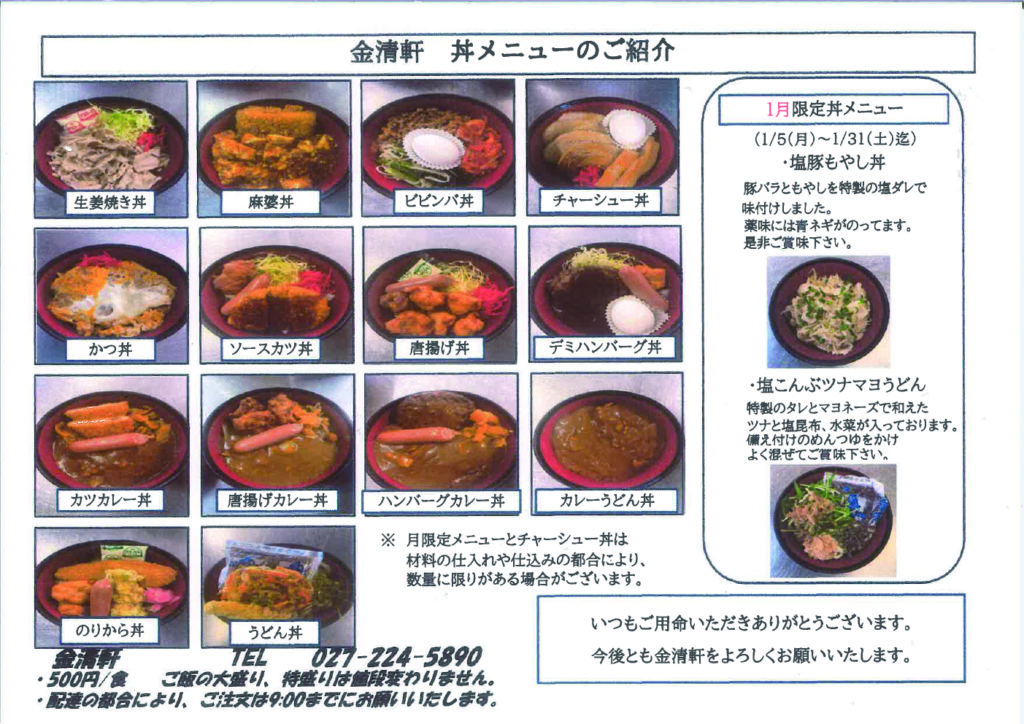1月の日替りメニュー